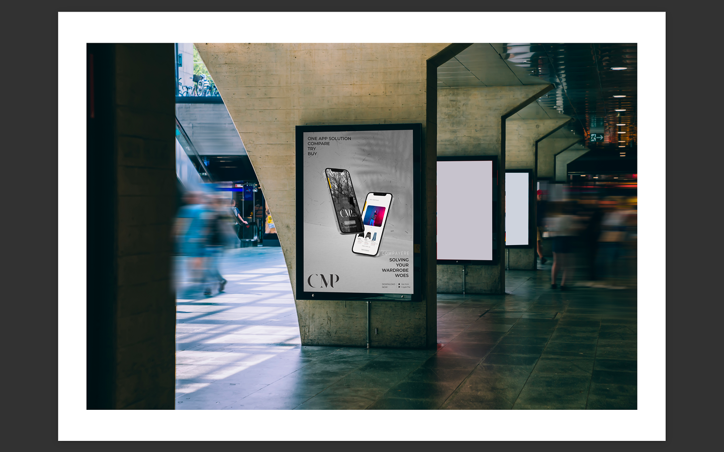 For my Master’s, I designed a mobile application with 40 plus screens aimed at bridging gaps in fashion shopping apps. The concept introduced features like product comparison, an AR fitting room, and a barcode scanner, wrapped in simple navigation and a clean, aesthetic layout. This project combined both application design and 360 branding.